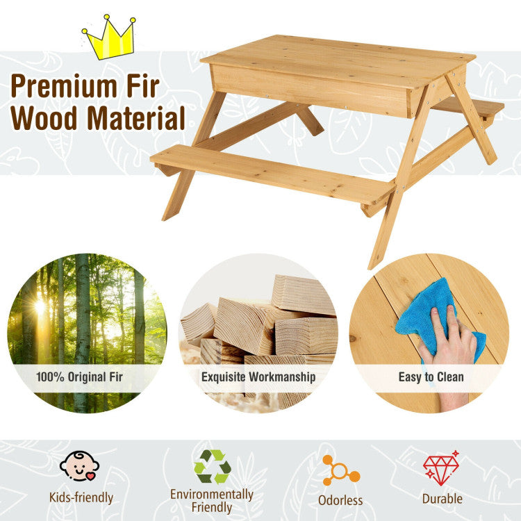 This outdoor play table combines a water table, a sand table and a picnic table together, which can not only fits your kids of playing water and sand with their best friends, but also allow them to enjoy tasty food and chatting time or studying together at home. We aims at children`s safety and adopts high quality fir wood to build this table set and ensure more stability and security. If you are looking for something to provide your kids with brand new experience, then come and take this picnic table home. It will be the best gift for your kids!