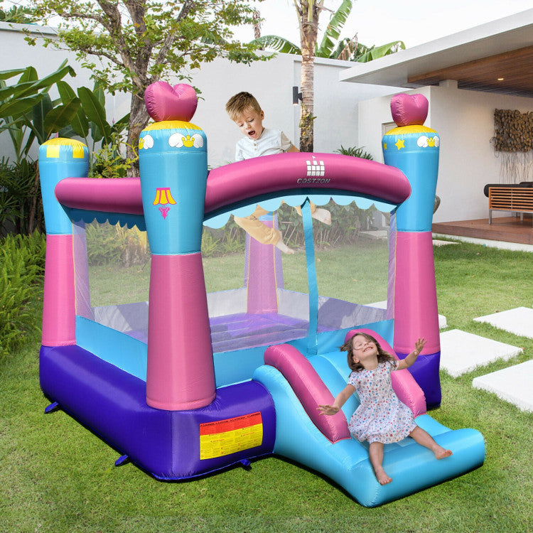 They can jump, slide and shoot in different areas, which brings extra entertainments to kids' childhood. After use, you can turn off the blower to take the bounce house down and store it in the carrying bag. Moreover, the combination of unique princess theme and multiple colors will definitely attract kid's attention at first sight.