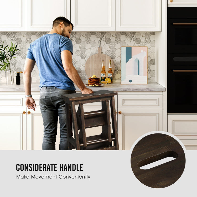 ● Solid Rubber Wood: Constructed of solid rubber wood, this multifunctional step stool not only ensures its long service time, but also comes with a strong loading capacity of up to 200 lbs for each pedal. Besides, the surface is painted, which allows you to clean it with ease.