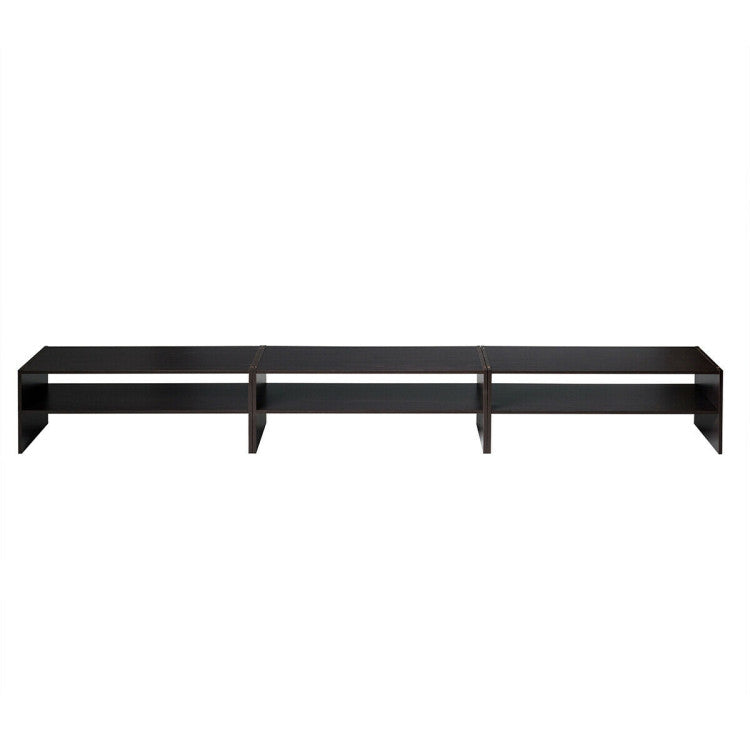This 3pcs 2 tier shoe rack is made of high quality chipboard and veneer which is waterproof and anti-corrosion as well as has good weight bearing.