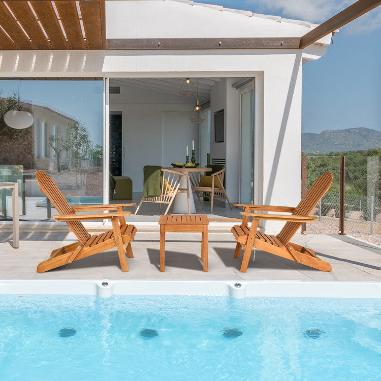 Are you worried about not having a proper outdoor chair set in your patio or poolside? This Adirondack chair set is made of 100% solid eucalyptus which can provide a more authentic sense of nature to your outdoor landscape. The chair is designed to be ergonomic whose back and seat has a comfortable inclined angle. Heightened back and widened armrest will provide enough support to your body. Extended seat can protect the inside of your knee. It is worth mentioning that the chair can be folded quickly for conveniently storage and transportation. The chair is easy to maintain and you can use it outdoors for season after season.
