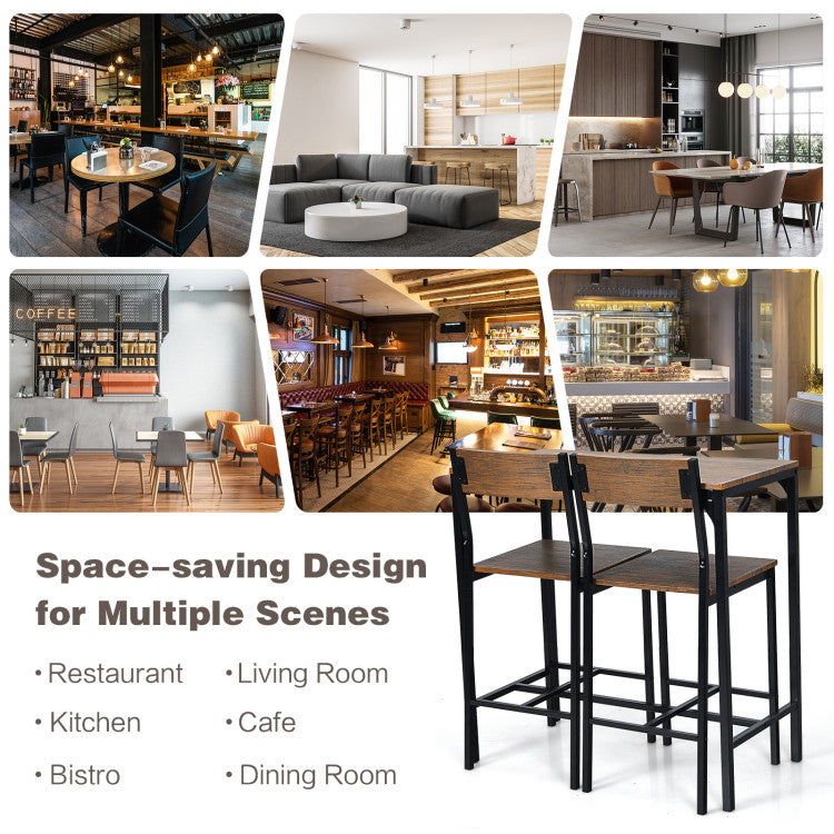 The bistro table set combines the natural beauty of the wood grain and simple lines to match seamlessly with any room style. In order to save more space, the stools can be tucked under the table when not in use. Specially-designed ergonomic backrest provides you with much more comfort when sitting on the chair. The solid steel frame and durable MDF tabletop through delicate craftsmanship ensure long service time. Owning this well-designed bar table set makes it easier to enjoy delicious food and have a good time with your family and friends.