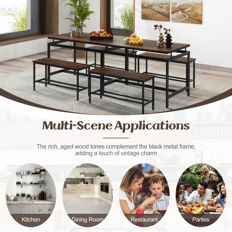 -2 benches can be stored under the table, suitable for limited rooms and apartments