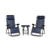 The cool and breathable fabric keeps you away from sultry feeling even during summer days. The waterproof and sun resistant performance makes it the best possible furniture set for outdoors. Made of a solid steel frame, both lounge chairs and tables can be used for a long time. The adjustable design with a locking system is a plus for enhanced comfort. All in all, it takes advantage of the body's gravity to generate comfort and relaxation. Isn’t that amazing? Widened armrest and soft head pillow provide yet another level of comfort and support to your whole body. The practical folding table in this set lets you place drinks and snacks on it and 2 mesh cup holders prevent any spilling disaster. Most importantly, this patio lounge chair set is light in weight and foldable but sturdy enough to support a high load. Last but not the least, it's easy to store and move from one place to the other.