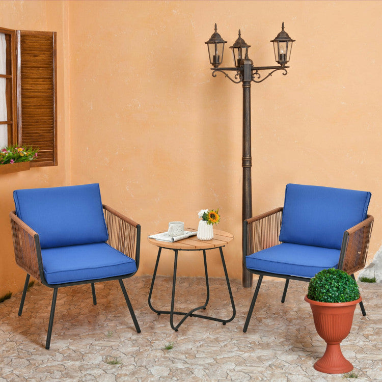 The comfortable armrest and backrest bring you a relaxing feeling when you have a casual afternoon with your family or friends in the backyard, garden, or living room. Moreover, soft cushions add more relaxation, and the removable cover makes it easy for you to replace and clean. The 3 pieces wicker furniture set is a great choice for you.