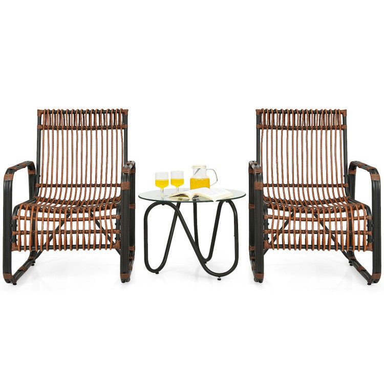 This wicker bistro set with a classic design will add a sense of elegance to your space. Single chairs and glass tables with adjustable feet can keep the balance even on uneven floors and can prevent the floor from getting scratched. The backrest and widened seat are ergonomically designed to eliminate your fatigue quickly. Made of the tempered glass tabletop, you can place drinks, snacks, and some daily necessaries on the coffee table. Besides, the smooth surface is easy to clean and maintain. Comes with clear instruction, you can complete the assembly in a short time. This versatile wicker furniture set will be a great addition to your house!