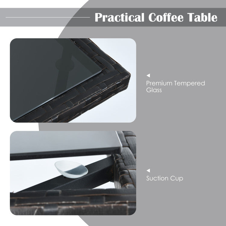 | Material | Steel, PE rattan, sponge, tempered glass, polyester fabric |
