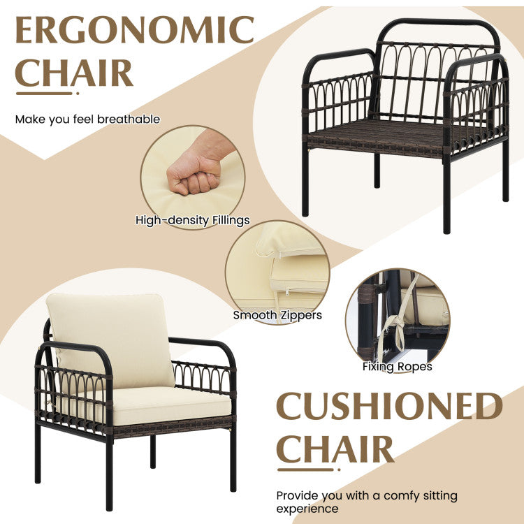 | Material | PE Rattan, Metal, Tempered Glass, Polyester, Sponge |