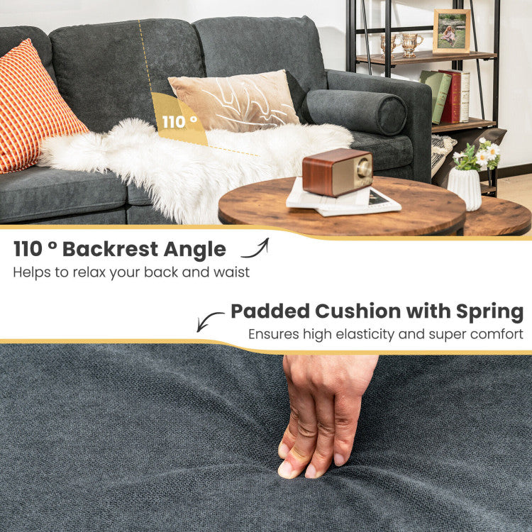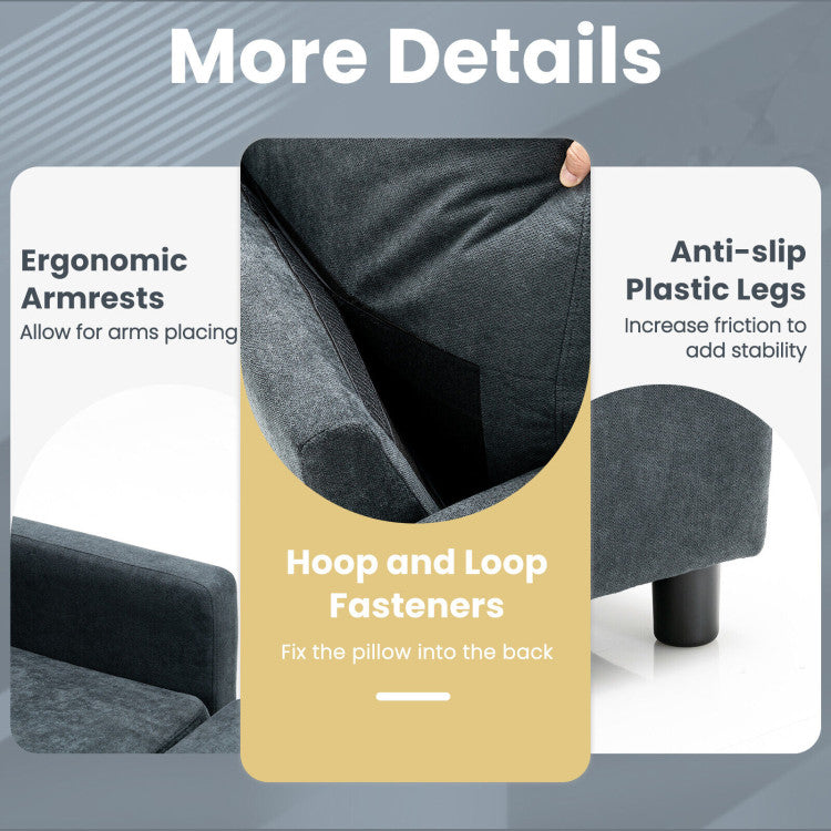 Sponge padded cushion with spring offers great support and high elasticity. And 66" x 21" (L x W) seating area, 110° backrest angle and ergonomic armrest help to fully relieve your fatigue. To add more comfort, we also design with 2 soft bolsters. In addition, solid pine wood frame keeps it durable and stable. Each seat can support a weight up to 330 lbs, which is suitable for family use. Anti-skid legs can increase friction to add stability.