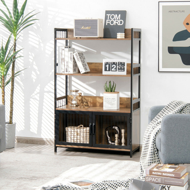 The shelves are spacious enough for kitchen appliances, like a microwave oven. And with 3-side edge protection, things you put on it are not falling off. Besides, the bottom cabinet is fitted with grate doors, which provide certain protections and ensures good ventilation. In addition to storage function, the storage cabinet is also an attractive addition in industrial and modern style. What's more, standing 49.5" tall, the industrial kitchen storage cabinet can still keep excellent sturdiness and stability, since it is made of premium MDF and durable steel. You can mount it to the wall with the bonus anti-toppling device, which contributes to safe use. In all, this storage shelf is functional and stable and is widely applicable to study, living room, kitchen, etc.