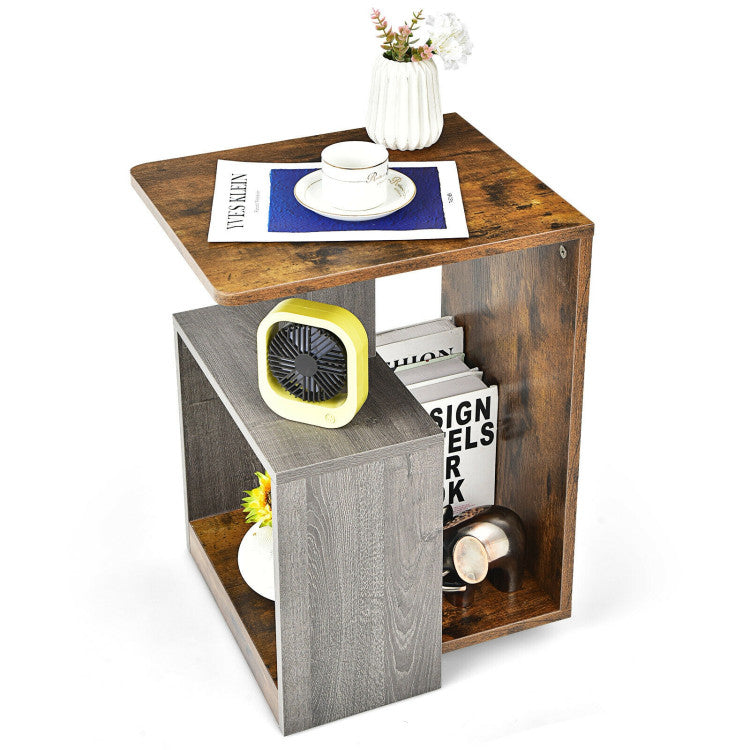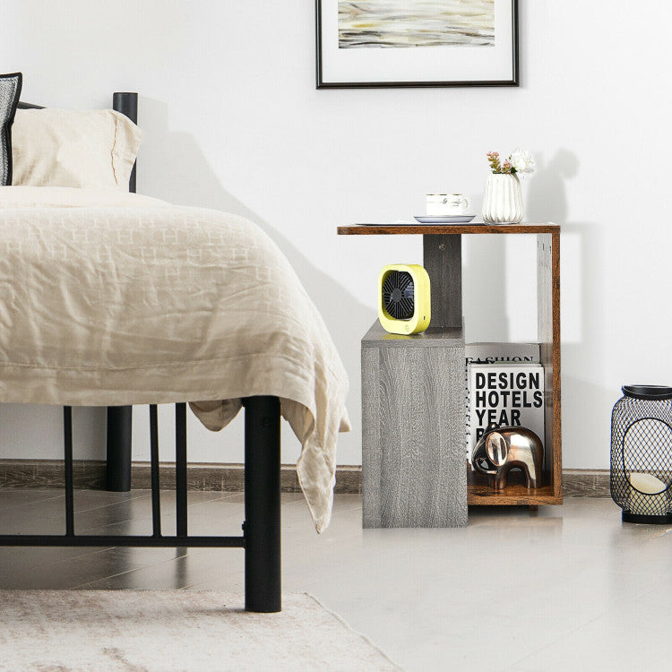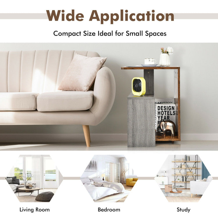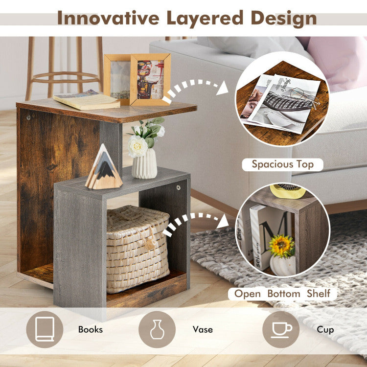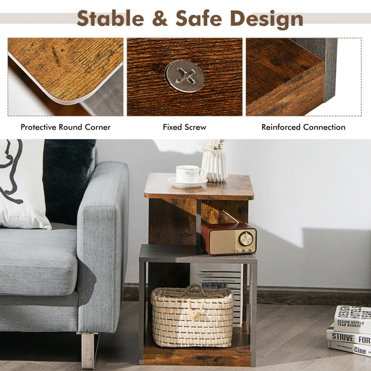 This unique side table provide easy access for your every items. The design of three open storage shelves can not only be used to store daily articles and make your space look more orderly, but also can be used to display artwork and decorations. It's lightweight and easy to move, so you can use it as a bedside table in your bedroom or as a sofa table in your living room. And the table has a thick solid base to ensure overall stability. Besides, the tabletop is waterproof and wear-resistant for long service time.