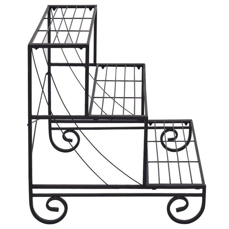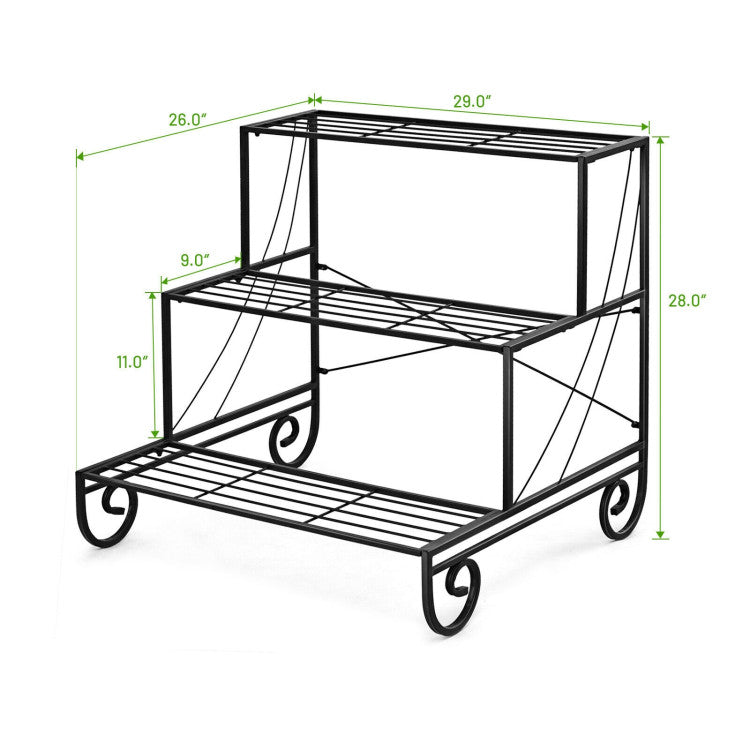 -Comes with 3 flat metal shelves that are made in a step design to display your plants in an appealing and interesting fashion