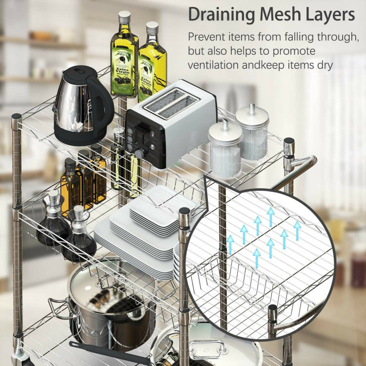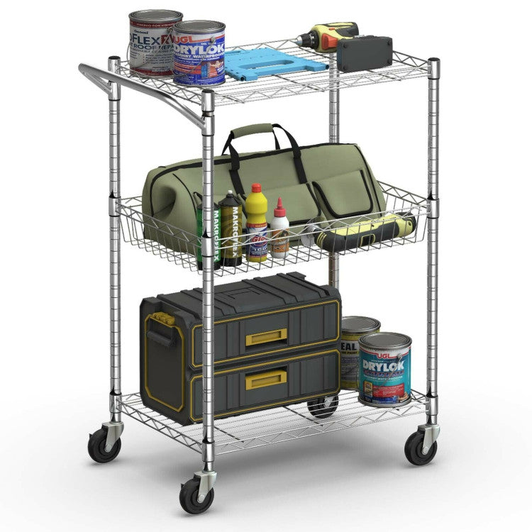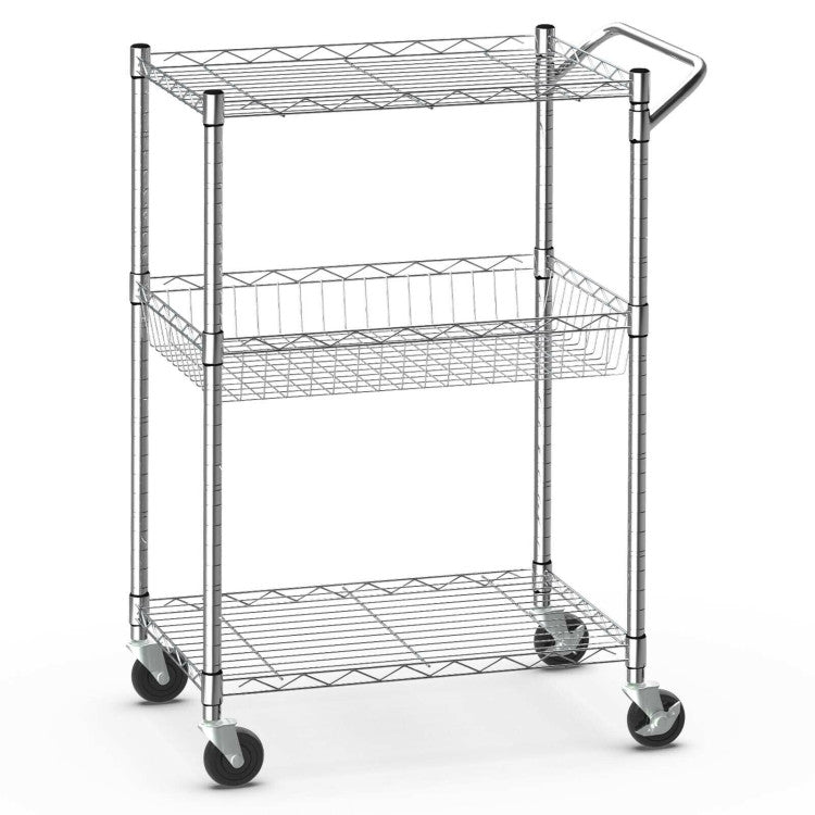 Use it in your kitchen for serving meals or for storing your mixer, bread machine and pots, and pans. It holds computer equipment in the office, towels in the bathroom, or tools in the garage. The three tiers offer ample space to store your household essentials. The included wheels allow for easy mobility around your home, and they can be locked for your convenience. Easy to care for, just wipe with a clean damp cloth to keep it looking as good as new for years to come. Our utility cart is the best choice to bring convenience to life.