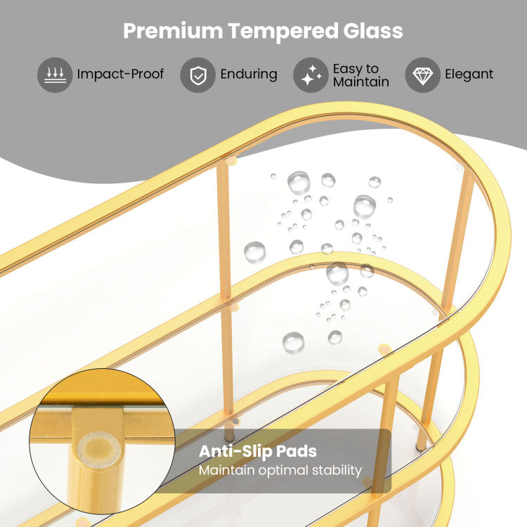 -3-tier storage unit with a wide countertop and 2 spacious shelves