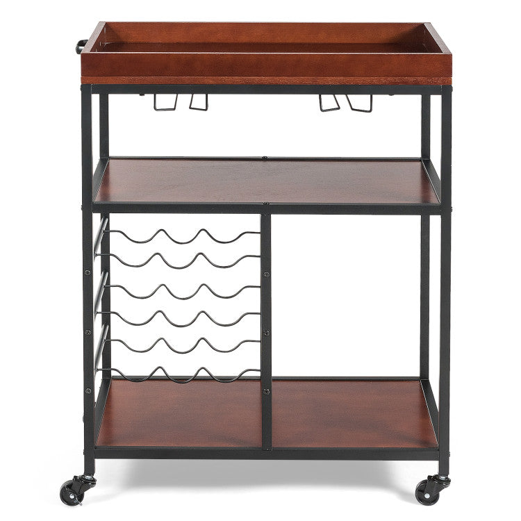 Made of high-quality wood board and sturdy metal frame, the cart is extremely durable with greater bearing capacity. The three-tier structure provides a lot of storage space, and you can place items layer by layer according to your needs. With a two-row wine cup holder and three-layer wine rack, the cart makes the kitchen more organized. Equipped with 4 rolling casters, it's easy to move in the kitchen. It is ideal for kitchen, bars, restaurants and more.