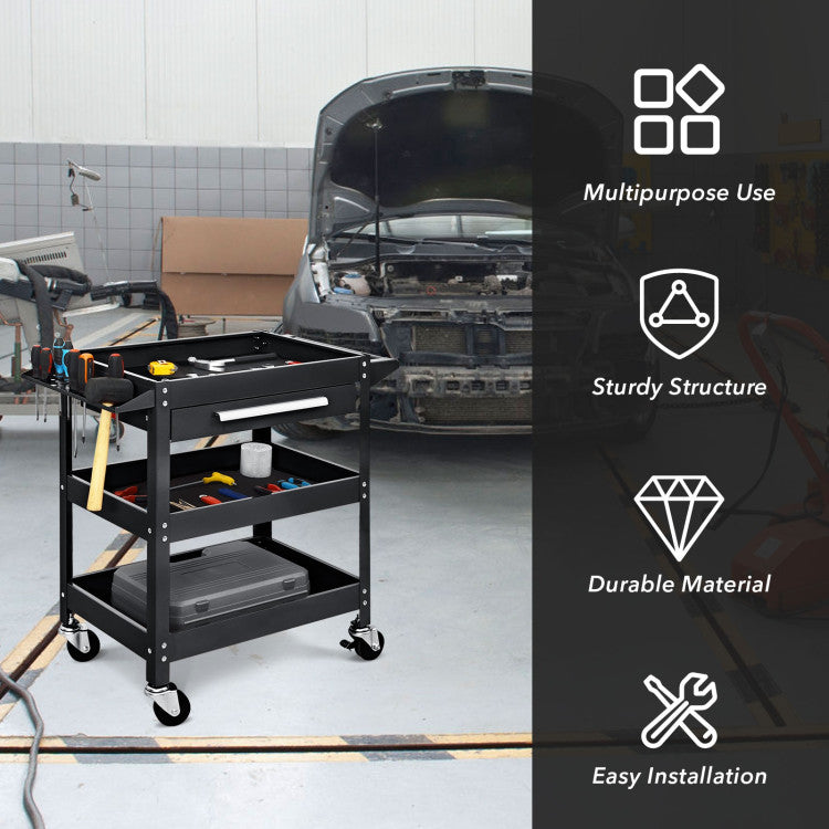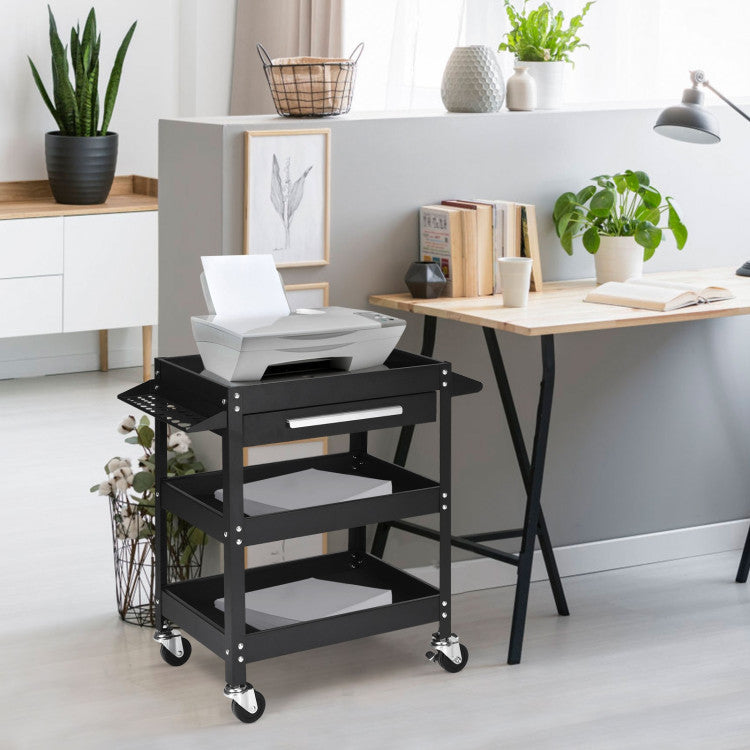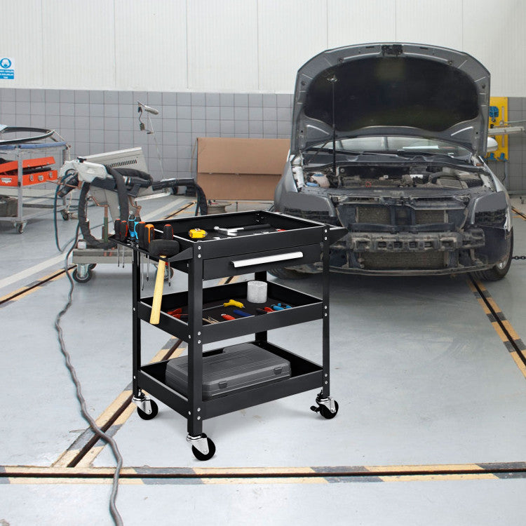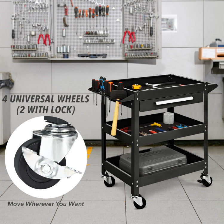 -Three trays, a drawer, an organizer shelf, and spacious space for storage