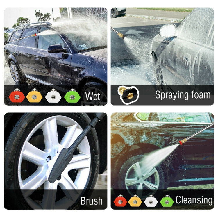 -Including 1 High pressure washer, 1 Gun stock, 1 26FT high pressure hose, 1 Patio cleaner, 1 Fixed brush, 1 Lance, 1 Needle, 1 Inlet filter, 5 Nozzles, 1 User Manual