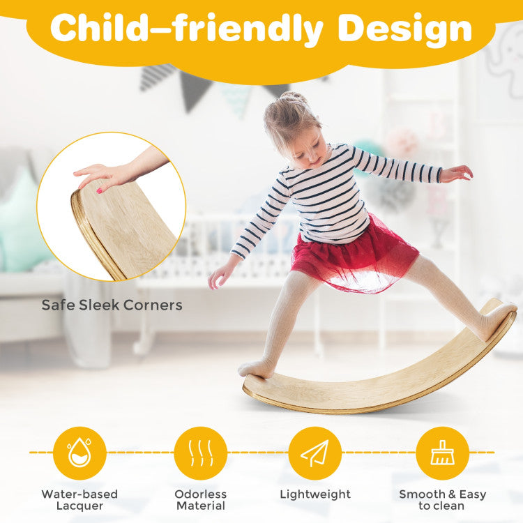 The wooden balance board is designed to develop kids' sense of balance and stimulate their creativity.