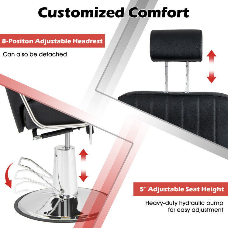 -Adjustable reclining backrest at 135° for hair styling, shaving and massage