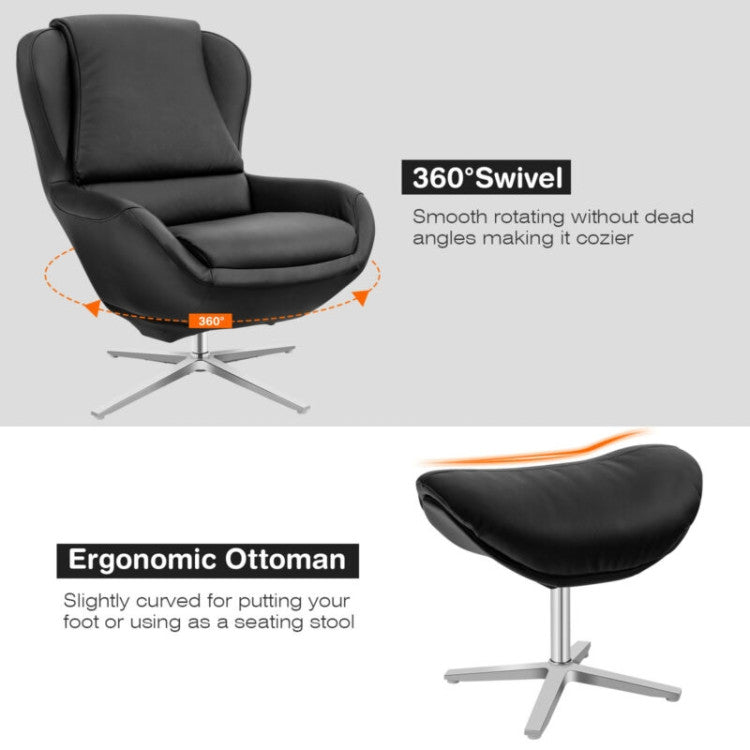 Cowhide leather appearance makes the sofa cushion high-end yet low profile, and also ensures the comfort. Supported by a 4-claw aluminum base, the ottoman and chair can support up to 330 pounds. Ideally placing in your living room, bedroom, this accent chair set is a versatile choice and a universal decoration for any living space.