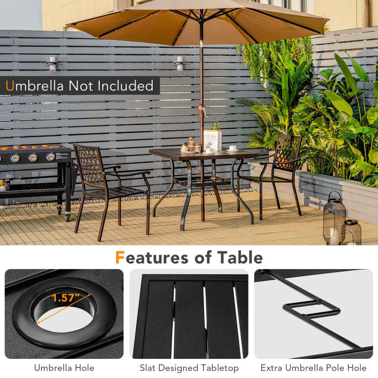 -2 Umbrella holes respectively on the tabletop and under the table make your patio umbrella stand steadily