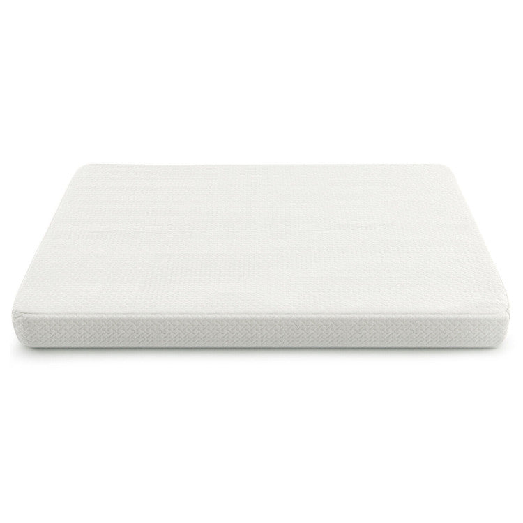 Fits Standard Size(38" x 26") Playards: Measuring 38" x 26", this foldable Pack and Play Mattress Pad perfectly fits to most standard playards, cribs and toddler beds. And the rounded corners leave no dangerous gaps or risks, ensuring your baby's safety while sleeping and playing. Please measure your playard before buying. Scientific Dual Sided Mattress: The optimal design features a 2-layer construction includes a firmer side made of 1.5" 27D sponge and a softer side made of 0.5" memory foam. The firmer side is suitable for newborn babies and you can flip the Play Yard Mattress over to the softer side for growing baby. Removable and Waterproof Cover: The waterproof outer cover will bring maximum convenience to new mothers and fathers, making bed-wetting no longer troublesome. Also, the outer cover is machine washable and the premium zipper allows you to easily remove the cover for regular cleaning. Foldable and Portable Design: This foldable and portable playpen mattress can be folded into a compact size for easy storage. In addition, this lightweight Pack and Play Crib mattress weighs only 3.5 lbs and the matched carry bag is built with 2 handles, which is convenient for taking out to daycare or traveling. Built For Comfort and Safety: With 3" thick padding, the tri-fold pack and play mattress provides comfortable sleeping experience for your kid. The outer cover is breathable and skin-friendly fabric which is free of harmful chemicals. The precise stitching of the cover will avoid wrinkles and is comfortable to touch.