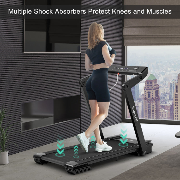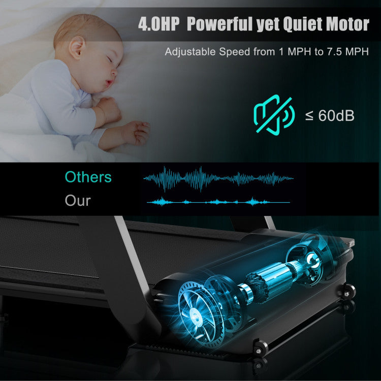 With an ultra-wide running area, the treadmill makes you feel like running outdoors. And the 5-layer running belt with remarkable shock absorption and wear resistance effectively protect your knees and muscle. In addition, the maximum peak power of the motor can reach 4.0HP, which is comparable to the gym-standard treadmill. With a quick-folding design and bottom wheels, the treadmill is also convenient to move and store. All in all, our treadmill is a fabulous combination of aesthetics and functionality, offering you a great exercise experience. In order to maintain your running machine better to extend product life, it is recommended to turn off the running machine after using it for 2 hours and have a 10 min break before continuing.