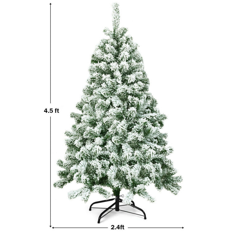 Full-body Snow-Flocked Xmas Tree: Crafted with 400 snow-flocked branch tips, this 4.5ft Christmas tree is leafy and elegant. It will create a unique wintry feel, leaving you with the false sensation that it is a real tree. With its simple design, you can DIY ornaments with family members at will and deepen family ties. High-Quality PVC Material: The leaves of this artificial tree are made of high-quality PVC material. Combining premium material and exquisite craftsmanship, these snow-flocked leaves are not only lifelike but also of strong adhesion. Thus, they are not easy to fall off and fade, ensuring long-term use. Sturdy Metal Stand: This snow-flocked Xmas tree features an X-shaped iron stand that provides strong support. Compared with other cheap plastic bases, the metal stand is more stable and breakage-resistant, keeping it standing upright for years to come. Besides, the metal stand is foldable to facilitate storage. Hinged Design for Easy Fluff and Assemble: All hinged construction makes the artificial tree easy to fluff and set up, saving you a lot of time and effort. In addition, the Christmas tree can be divided into 3 sections and placed in a storage bag, allowing you to store it for future reuse conveniently. Eye-Catching Addition for Any Place: Snow flocked leaves create a unique wintry feel, making this 4.5ft Christmas tree an eye-catching addition for any place. You can either put it at home to strengthen the Christmas atmosphere and celebrate Christmas with family members pleasantly or put it in shops to attract the attention of customers.