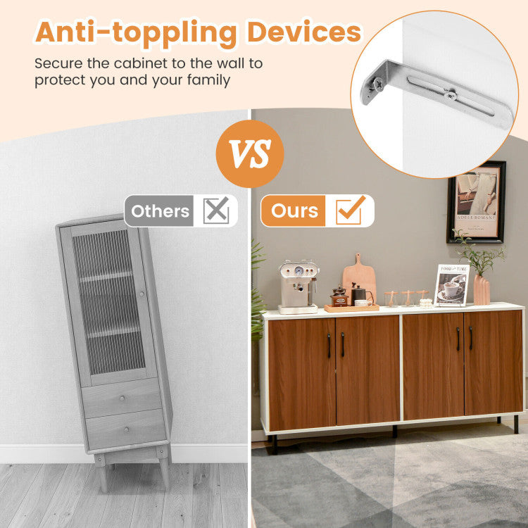 -Spacious cabinet-top and 4-door large cabinet to meet the storage need in daily life