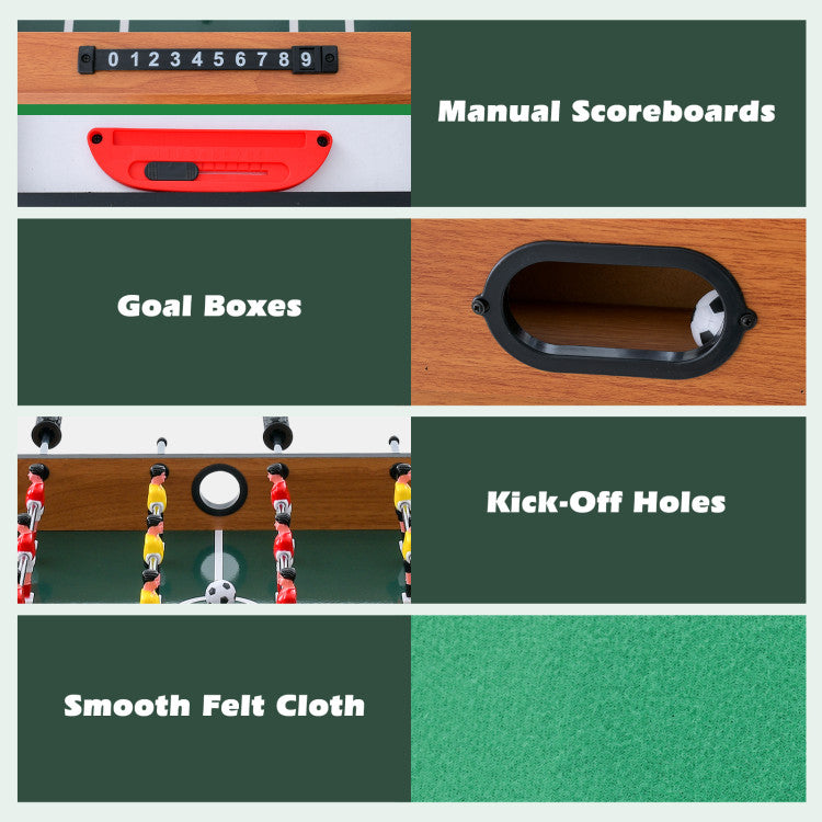-Equipped with goal boxes and kick-off holes
