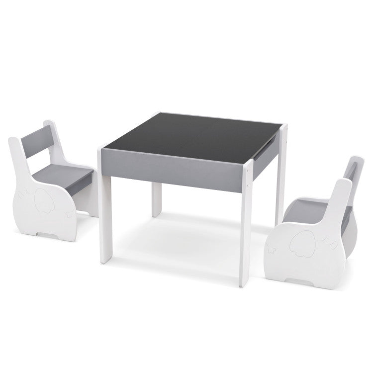 -Blackboard for drawing and writing, and white desktop for reading, eating and playing