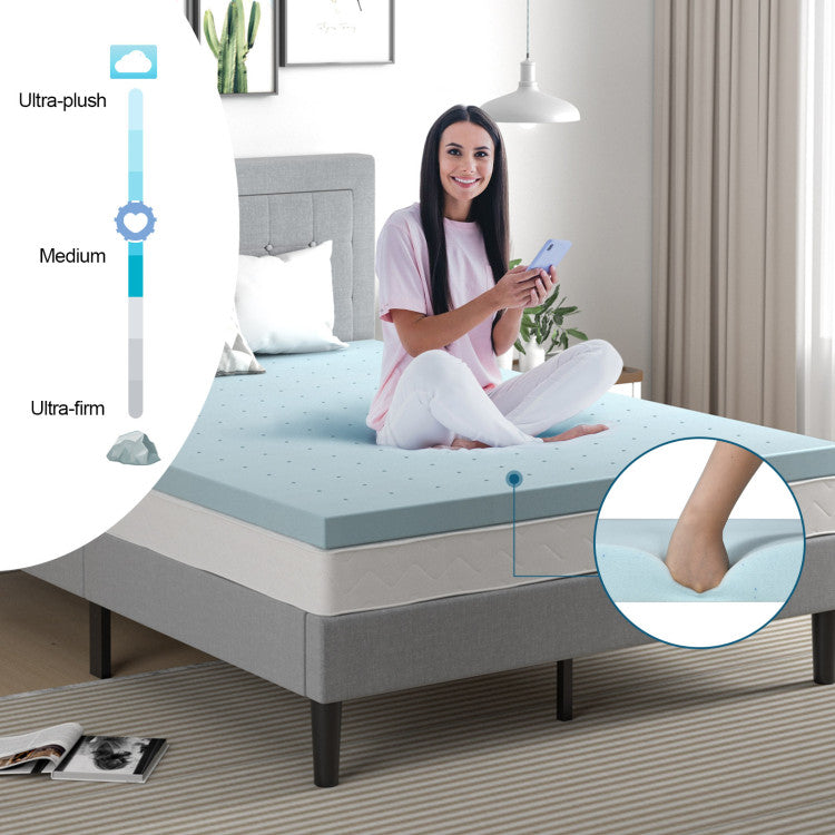 The mattress topper features high density and resilience that can support your whole body including your head, shoulders, hips, knees, and feet. The ergonomic design makes the mattress fit well to your body curve. And the ventilated top design ensures premium breathability and enhances airflow, keeping you stay cool on hot days. The gel infusion technology also ensures the appropriate temperature and creates a great sleeping environment for you. The CertiPUR-US Certified mattress topper is just what you need.