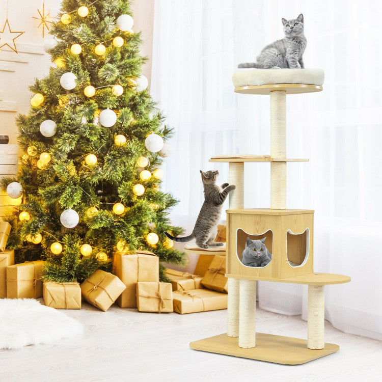 Spacious and Versatile Fun Center: Featuring 4 layers, this multi-purpose cat play center works perfectly as a recreation paradise! The cats can look out the distance or enjoy a sunbath on sunny days by sitting on the plush top perch, melt into the luxury roomy condo, and jump between platforms, enjoying the endless fun or comfortable rest.