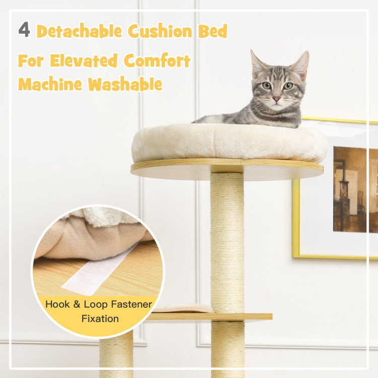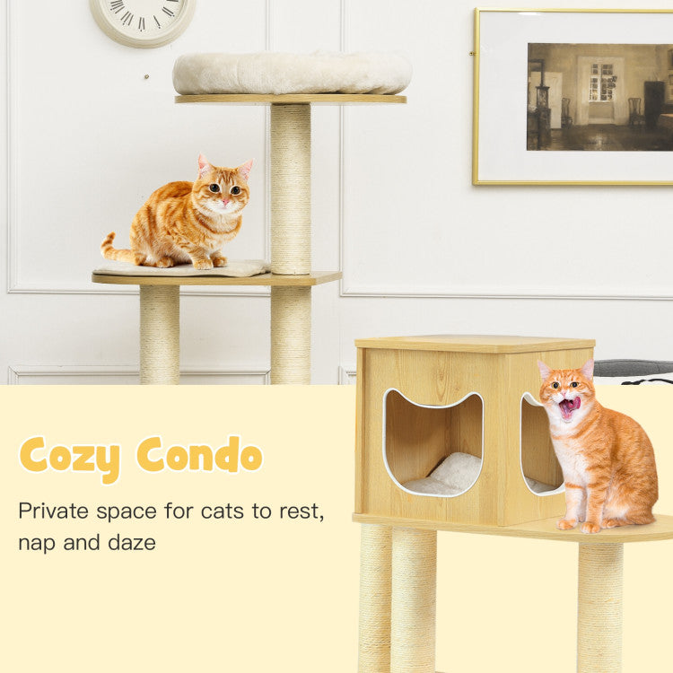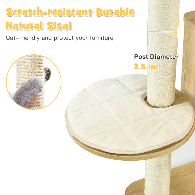 Sisal Covering Posts for Scratch Fun: Comparing to other cat trees, our cat activity tree's pillars are fully covered with natural sisal rope, which will satisfy your cats' instinct of scratching and climbing perfectly, allowing them to grind their claws to develop a good habit of scratching. So your expensive furniture can be protected from damage.