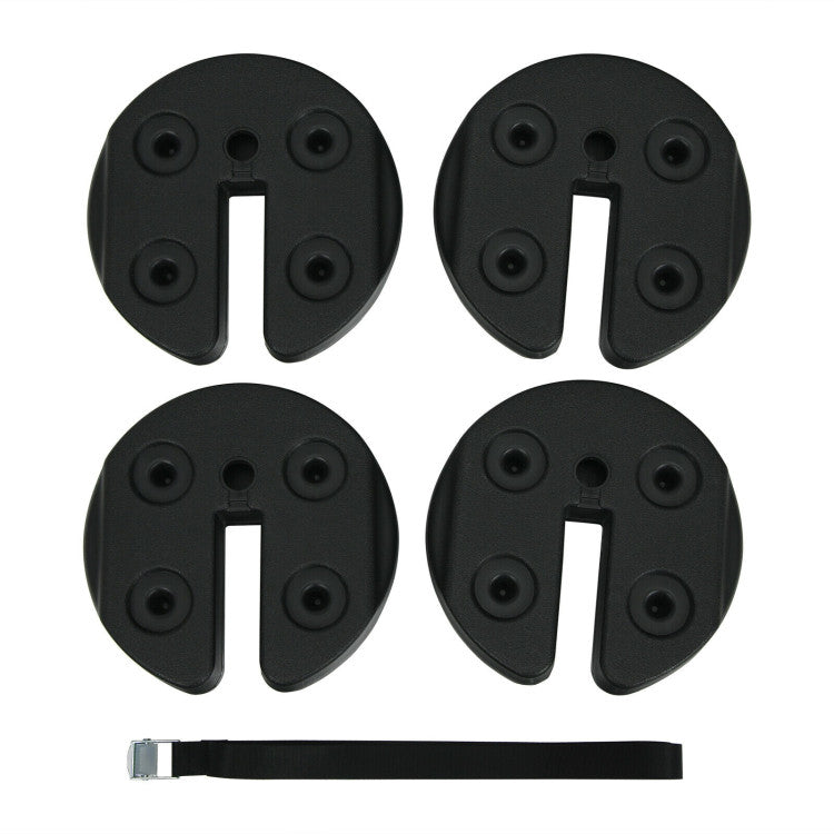 The no-pinch design enables easy and safe installation without hurting fingers. The 1 1/4” wide open slot is suitable for most canopy legs. It is worth mentioning that each weight plate has an injection spout that allows you to fill in water or sand to increase the weight to better hold down the canopy. If necessary, you can also choose to stack weight plates together. Compared with sandbags, our canopy weights are more beautiful and portable, suitable for outdoor events such as picnics, parties, trade shows, etc.