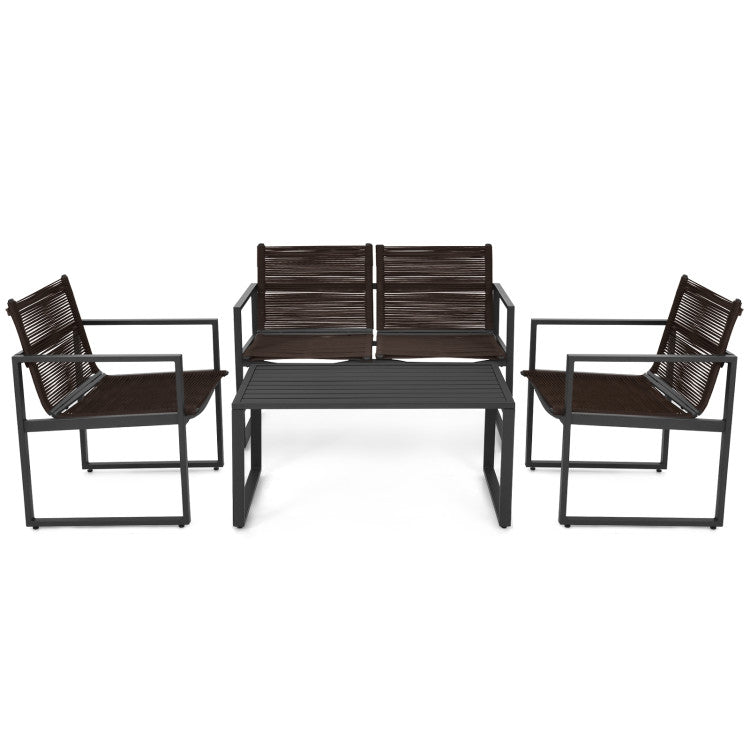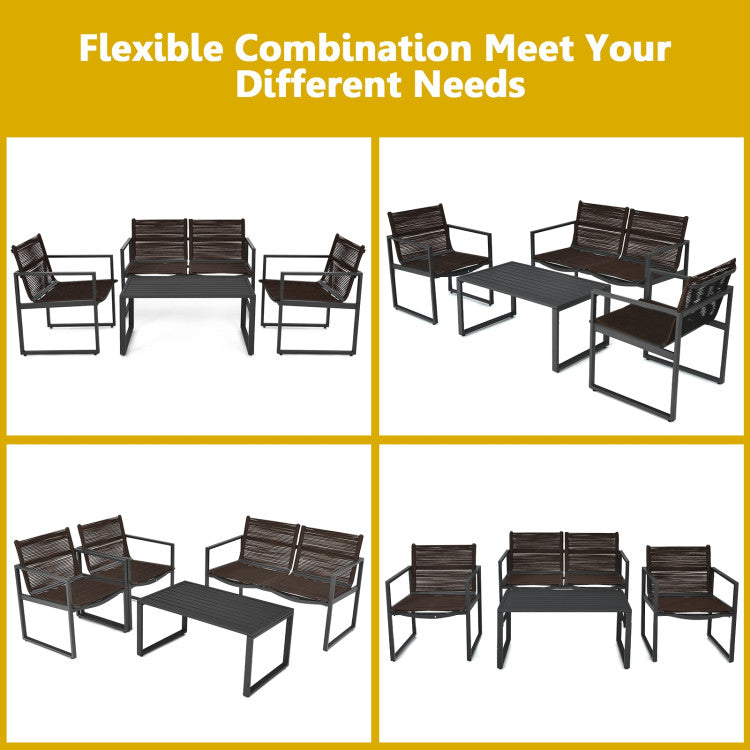 The 4 pieces of patio furniture set will provide you and your family with a comfortable space for conversation, reading, or other activities. What's more, you can put this modern conversation sofa set in the backyard, poolside, or balcony as you like. Equipped with an ergonomic designed backrest and armrest, the patio bistro set can provide you with more comfort. In addition, each piece in the set is independent, so it can be rearranged according to your preferences. This outdoor furniture set can perfectly match various home styles and is the perfect complement to your house.