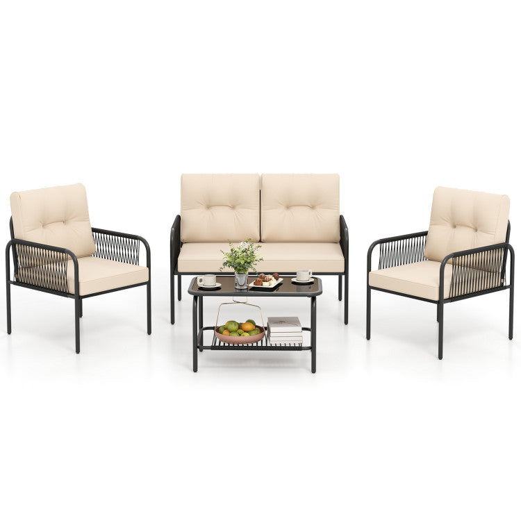 | Materials | PE Rattan, Metal, Tempered Glass, Polyester Fabric, Sponge |