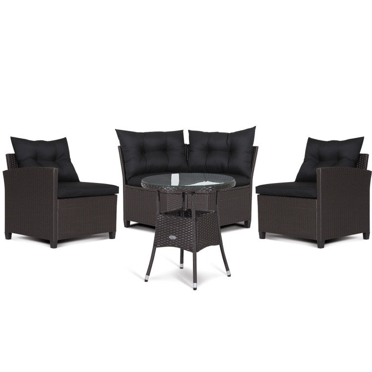 | Material | PE Rattan, steel, polyester fabric, sponge, tempered glass |