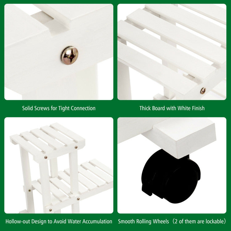 Thick and wide boards give the stand a sturdy structure and a good load-bearing capacity. It is both beautiful and practical, and can be used for a long time. This 4-tier flower rack with open high and low layer design allows for the placement of plant pots of different heights. It also provides plenty of space and sunlight for the natural growth of plants. With this flower plant shelf, you will find how easy and enjoyable the classification management is. Four flexible wheels allow you to put it at anywhere to maximize utilization. Stylish look and functionality makes it a perfect addition to your bathroom, living room, patio, balcony or any other space to display and store items in style.