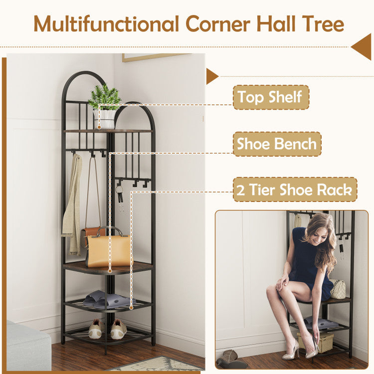 -Multifunctional corner hall tree for living room, bedroom, and entryway
