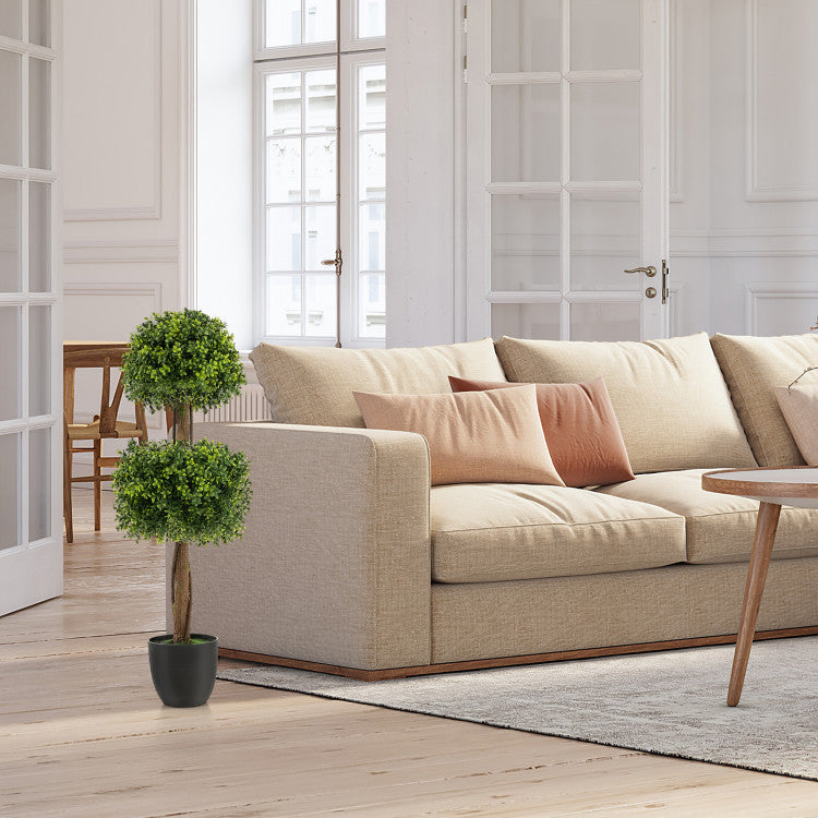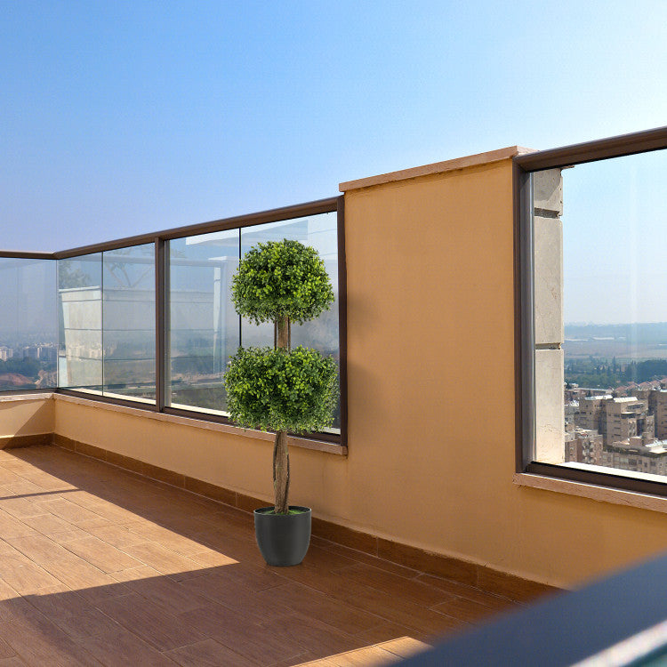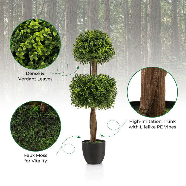 -Double ball-shaped faux boxwood features dense and verdant leaves