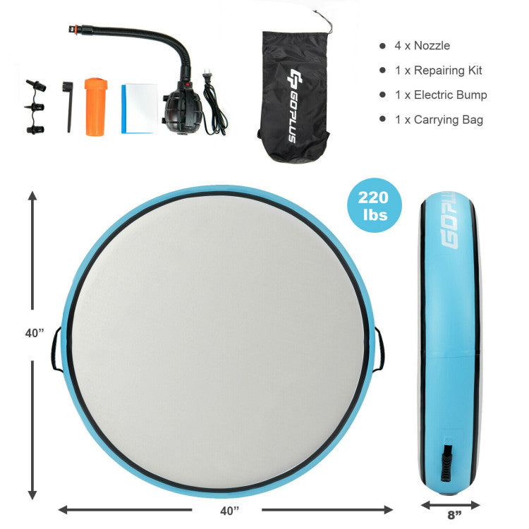 It is not only safe to jump and land on, but also easy to carry and store after deflation. You can place this multifunctional air gymnastic mat in the gym, dance club, fitness club, school or at home. I am sure you will love doing sports once you have possessed this magical inflatable round gymnastic mat!
