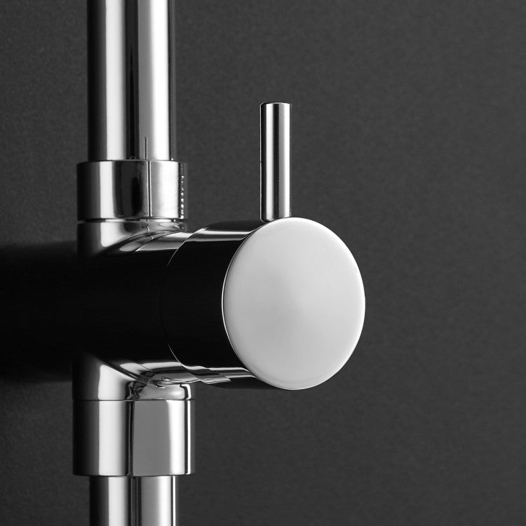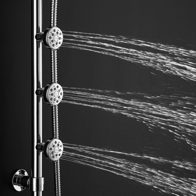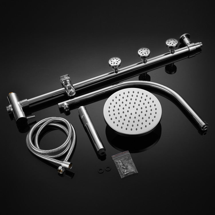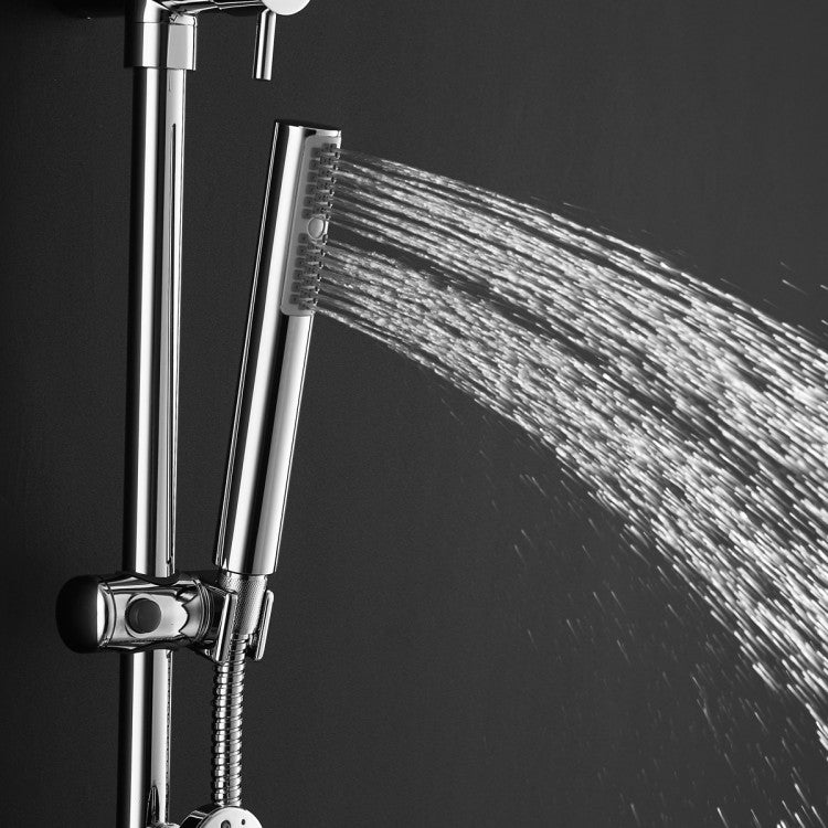 The contemporary and fashionable design matches any decor of your bathroom. Being made of solid and durable copper, this shower system not only prevents scratches, corrosion or rust but also makes sure long-lasting and durable so that you can enjoy a luxurious rainfall shower. Each connector of the showerhead can 360° swivel and will not become kinked. The entire shower system can be tightly and steadily fixed on the wall. The handheld showerhead can be adjusted to any angle but it can also be put steadily on the holder. A combination of overhead rain shower heads, handheld showerheads and extra small stable shower heads will give you a hearty and luxurious shower experience.