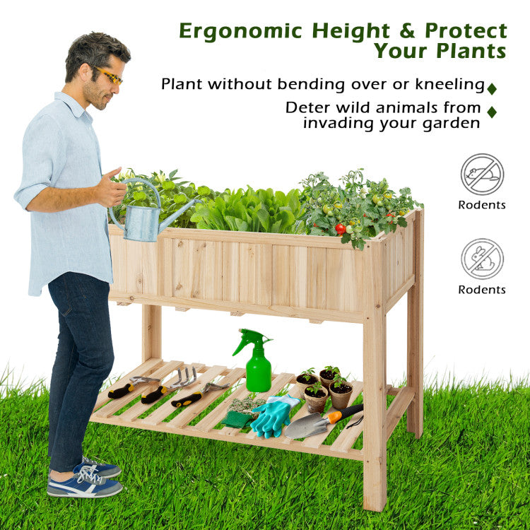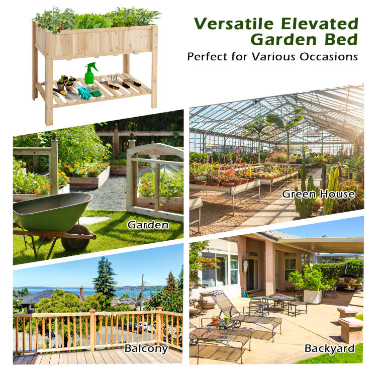 This wooden garden bed is made of natural quality fir, which can support a long service life. And its natural look will add a comfortable aesthetic to your balcony, garden, yard. The garden bed has a 5.5 cubic foot planter box, perfect for growing vegetables, herbs or flowers. And it is 35" tall for easy caring of plants without back pain. Besides, four reinforced bars at the bottom of the planter box make the structure more stable and can hold 309 lbs. In addition, there is a storage rack at the bottom of the garden bed, which provides additional storage space for your planting tools. The garden bed set also includes a liner that helps you separate the soil from the planter box for easy maintenance of cleanliness. And in order to reduce your assembly time, we also provide detailed instructions and videos to help you put them together quickly.
