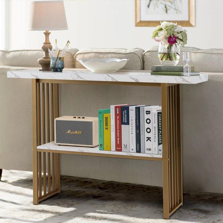 -Faux marble surface and gold frame for decoration