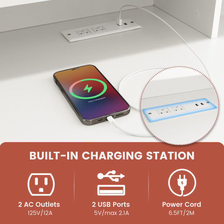 -A built-in charging station with 2 AC outlets, 1 USB port and 1 Type-C
