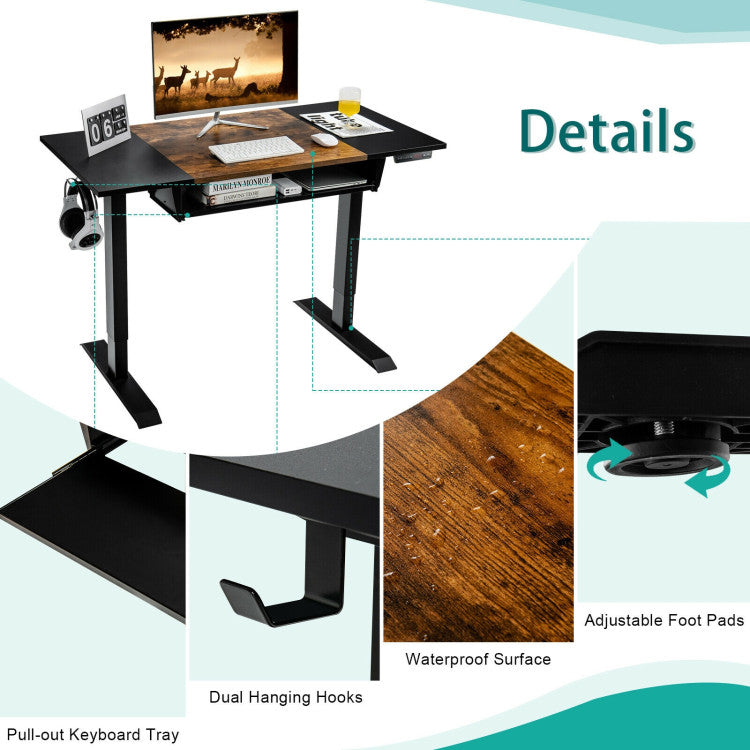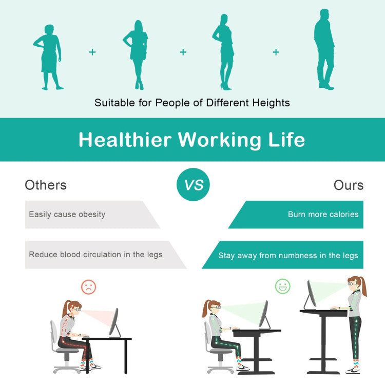 It features 3 preset buttons to memorize desk heights for instant adjustment. The standing desk features spacious desktop to accommodate plenty of office supplies for a tidy and efficient office area. What’s more, the sturdy steel construction with thickened board ensures increased stability for long-lasting service life. For additional safety, the standing computer desk is designed with anti-collision technology with adjustable sensitivity to protect it from bumps. Meanwhile, you can lock and unlock the programmable remote control to meet your different needs. This electric standing desk will be a fancy complement to your space.