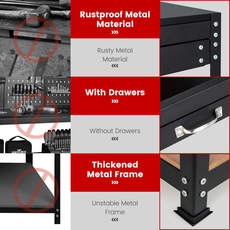 -Unlike others without drawers, this worktable features 2 practical drawers