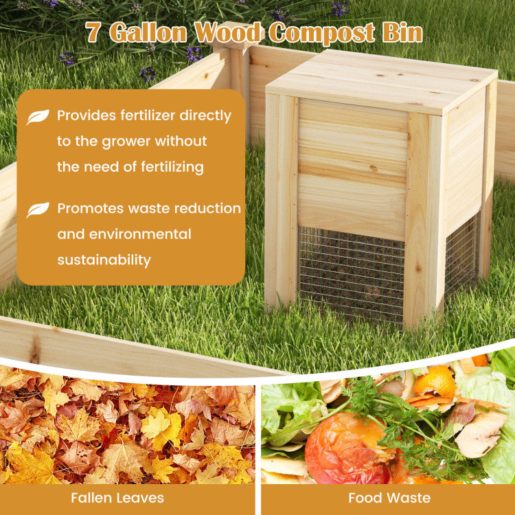 -7 Gallon wood compost bin can break down fallen leaves and food waste