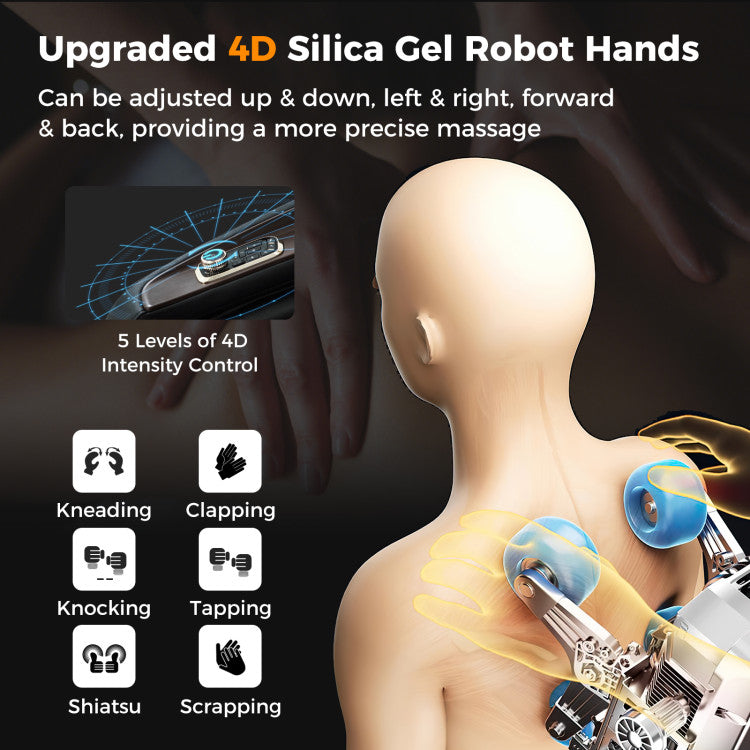 -Designed with 4D silica gel robot hands with 5 levels of 4D intensity control
